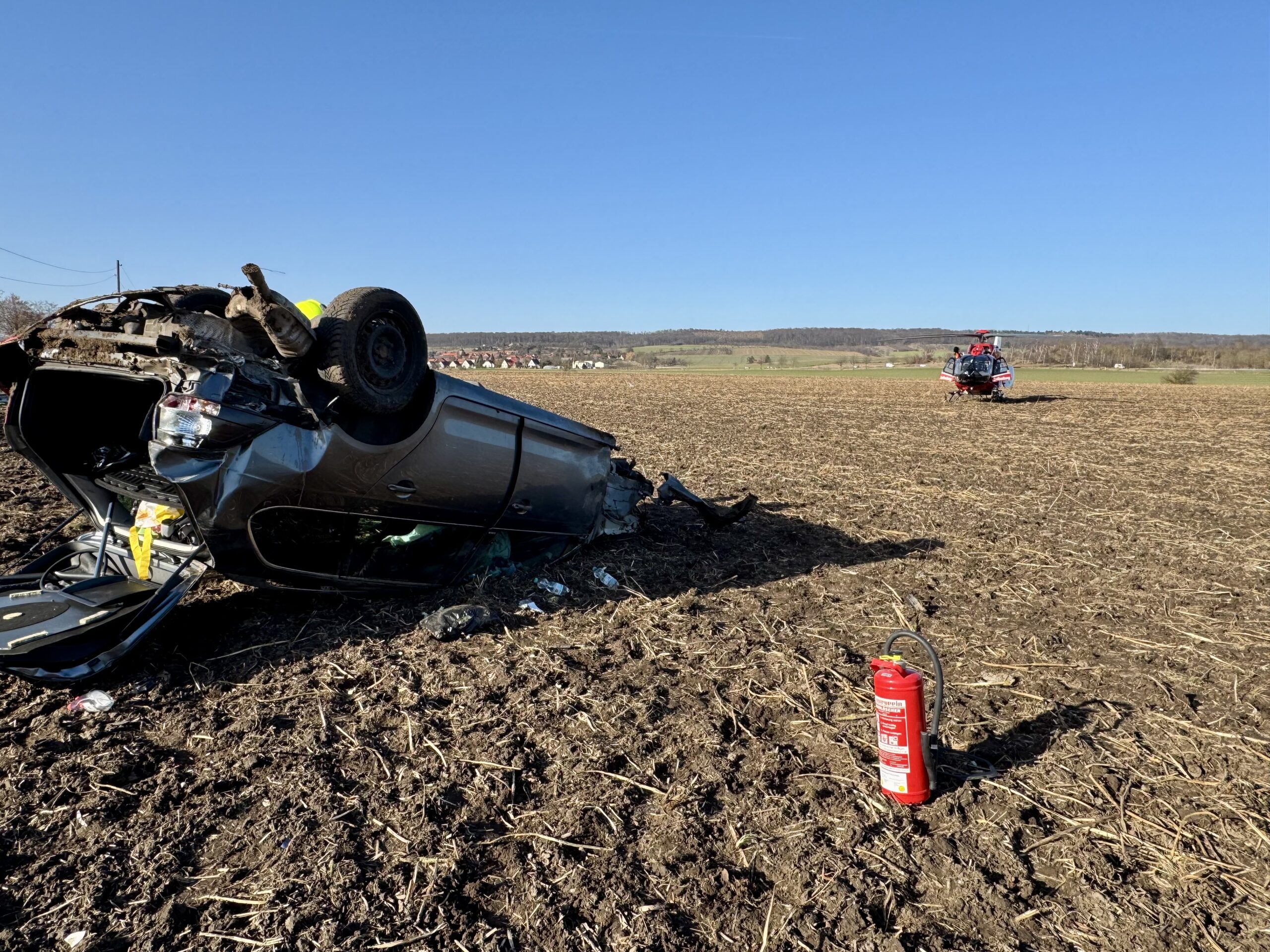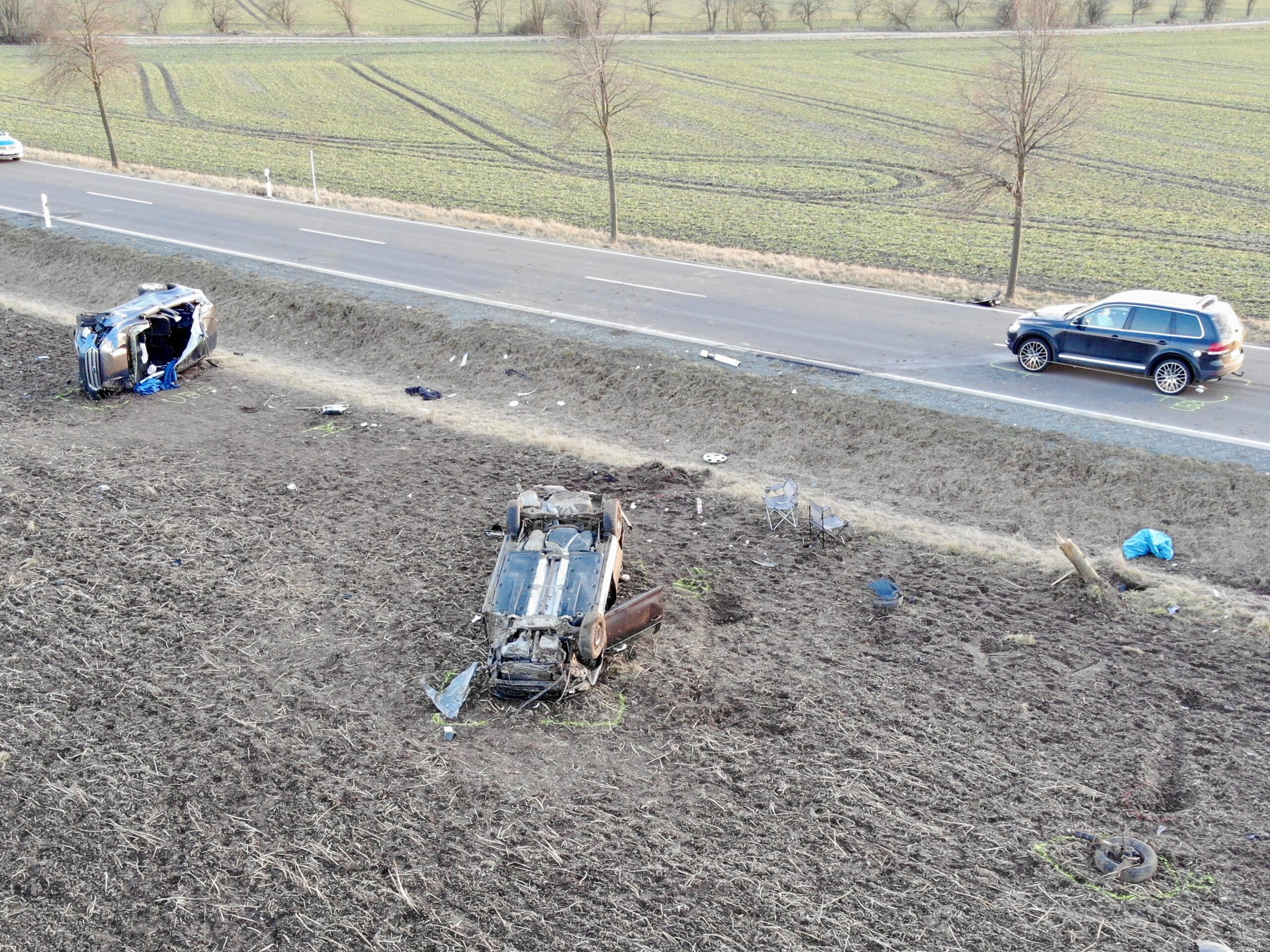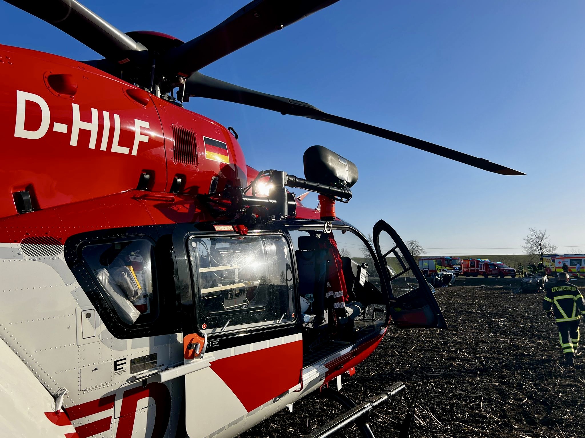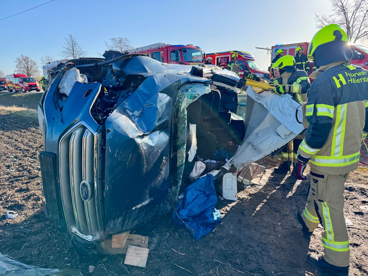 Die Polizei hat die weiteren Ermittlungen zur Unfallursache aufgenommen. Zur Unfallaufnahme unterstützten zwei Kameraden mit der Drohne. Die B79 war für mehrere Stunden voll gesperrt.