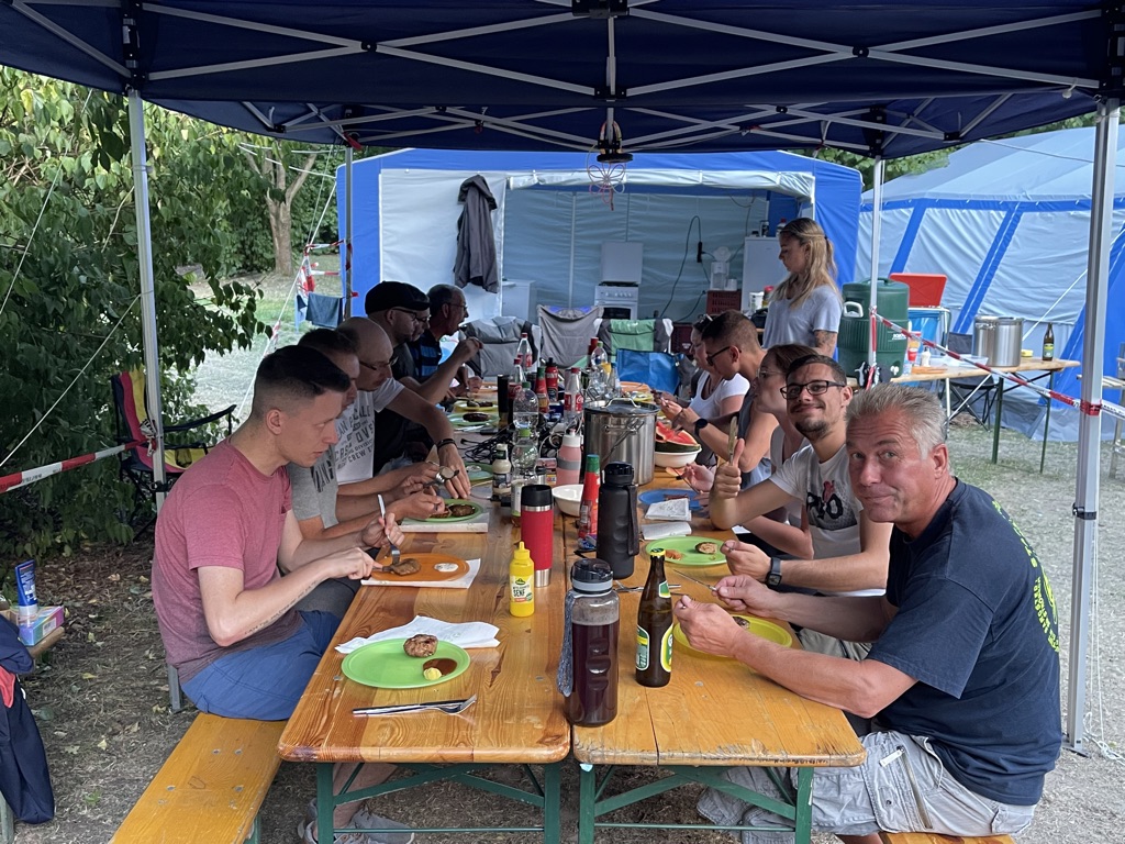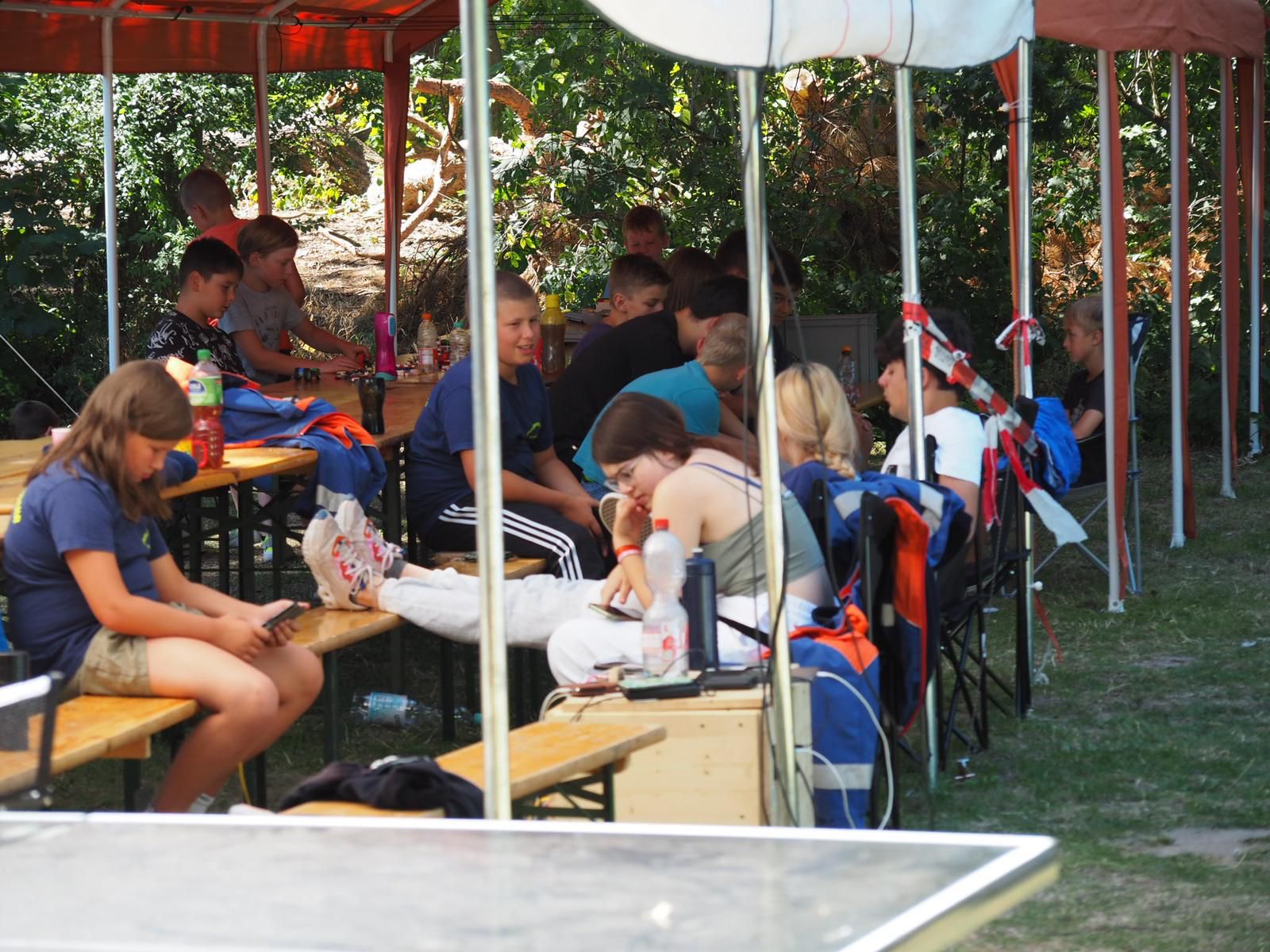 Gemeinsam führte unsere Kinder- und Jugendfeuerwehr ihr jährlich stattfindendes Zeltlager durch. So ging es für die 28 Jungen und Mädchen mit ihren Betreuern von Donnerstag bis Sonntag auf den Jugendzeltplatz in Almke. Nachdem die Zelte und Schlafplätze eingerichtet wurden, konnten sich alle im angrenzenden Freibad bei den hohen Temperaturen eine Abkühlung verschaffen. Die Kinder und Jugendlichen konnten sich bei unterschiedlichsten Aktivitäten wie Volleyball, Badminton oder Fußball täglich verausgaben. Mit den Lego-Steinen wurde der Kreativität keine Grenzen gesetzt, so entstanden die unterschiedlichsten Flugobjekte, Fahrzeuge und Bauwerke. Am Samstag besuchten uns dann Stadtwehrleiter Martin Schulz zusammen mit Halberstädter Ortswehrleiter Andreas Braumann, wir danken euch hier nochmal für die Hilfe beim Abwasch nach dem Mittagessen. Nach einem ausgiebigen Besuch im Freibad und einiger Runden Wasserball gab es zum Abendbrot für alle noch selbstgemachte Bouletten, Steaks und Bratwurst vom Grill. Es gelang, die unterschiedlichen Altersgruppen miteinander zu verbinden, sodass schon vor einem Wechsel in die nächste Abteilung neue Freund- und Bekanntschaften geschlossen werden konnten.