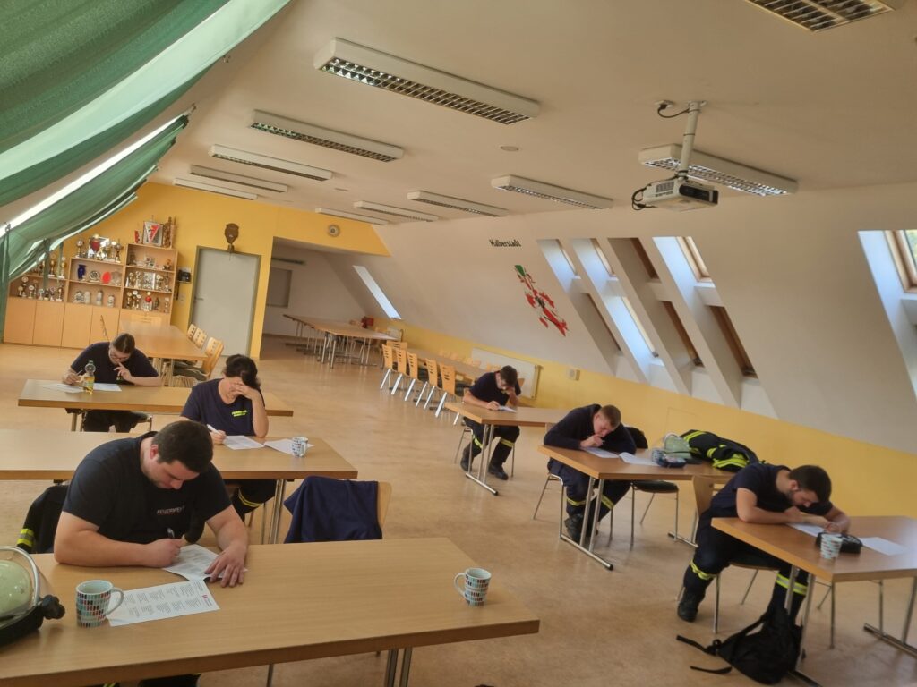 Neben den Rechtsgrundlagen, den Unfallverhütungsvorschriften, Gerätekunde, Fahrzeugkunde, Erste Hilfe und Verhalten bei Gefahren, mussten auch einige weitere theoretische und praktische Ausbildungsstunden abgeleistet werden, so auch das Training eines Löscheinsatzes sowie die Technische Hilfeleistung.
