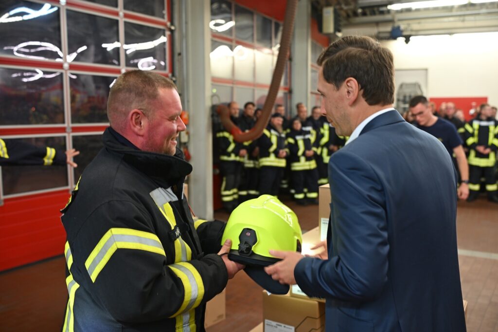 In seiner Ansprache dankte Oberbürgermeister Szarata den Feuerwehrleuten für ihren unermüdlichen Einsatz zum Schutz der Bürgerinnen und Bürger: „Die Sicherheit unserer Einsatzkräfte hat höchste Priorität. Mit der Anschaffung dieser modernen Helme investieren wir in die Zukunft und in die Gesundheit der Menschen, die täglich für uns alle einstehen.“