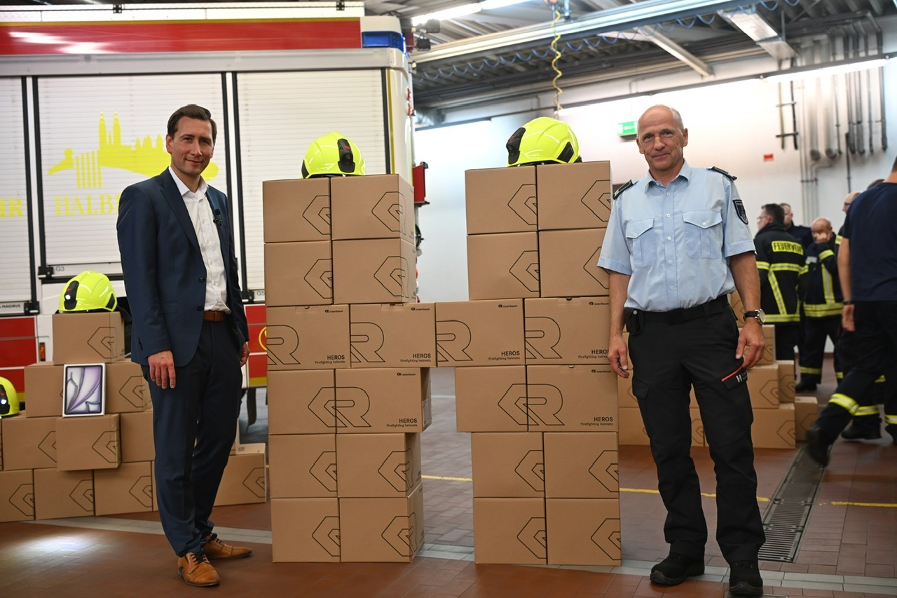 Bei einem offiziellen Übergabetermin konnte Oberbürgermeister Daniel Szarata am 07. Oktober 2025 insgesamt 230 neue Einsatzhelme an die Kameradinnen und Kameraden der Feuerwehr Halberstadt aushändigen – eine Investition von rund 114.000 Euro. Die neuen Helme bieten nicht nur verbesserten Schutz, sondern entsprechen auch den neuesten technischen Standards im Bereich der Persönlichen Schutzausrüstung. Die Beschaffung lief über die BTL Brandschutz Technik GmbH Leipzig.