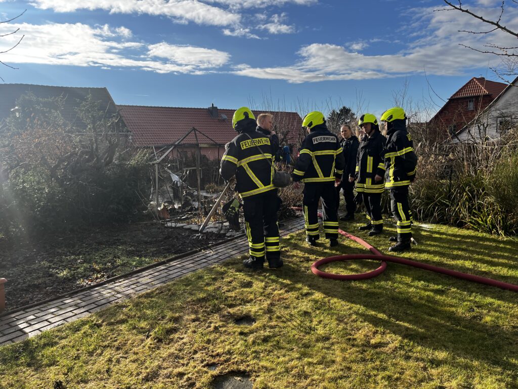 Kurzinfo: In der Ortslage Aspenstedt kam es zum Brand eines Gartenhauses. Durch die Kameraden der Ortsfeuerwehren Aspenstedt und Ströbeck wurde eine Brandbekämpfung eingeleitet und eine Wasserversorgung aufgebaut. Die Berufsfeuerwehr unterstütze bei den Restlöscharbeiten. Die Ortsfeuerwehr Sargstedt konnte mangels Personal nicht ausrücken. Nach kurzer Zeit konnte der Einsatz beendet werden.