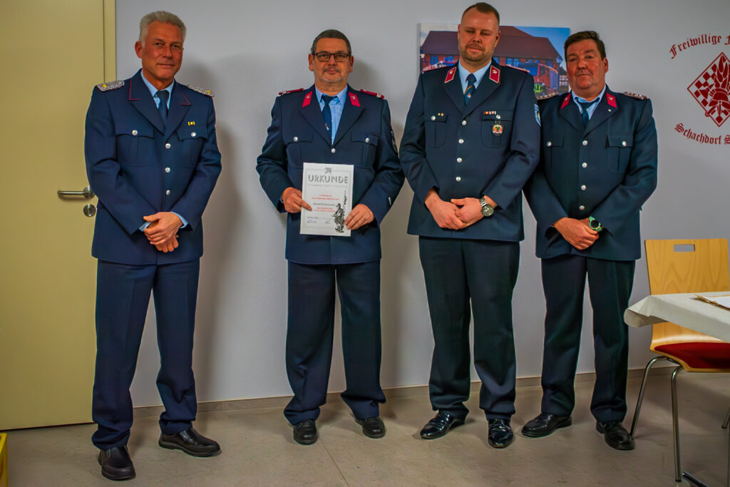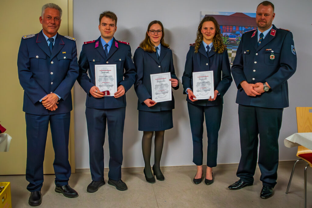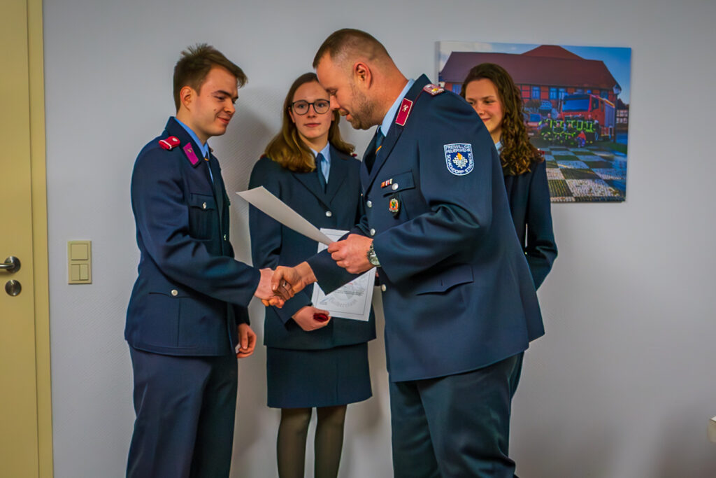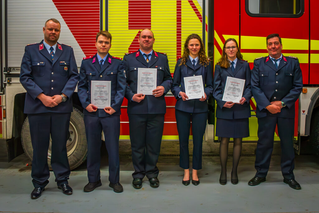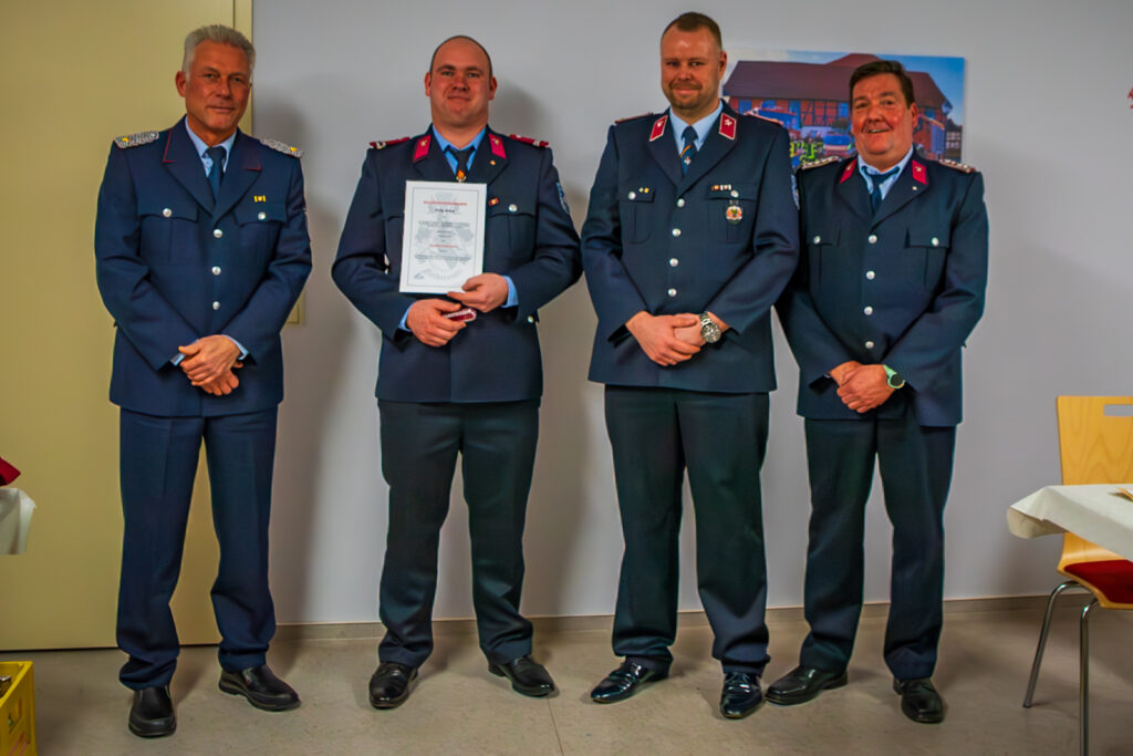 Im Anschluss wurden Beförderungen, Ehrungen und Berufungen durch Ortswehrleiter André Loeffke und Stadtwehrleiter Martin Schulz durchgeführt.